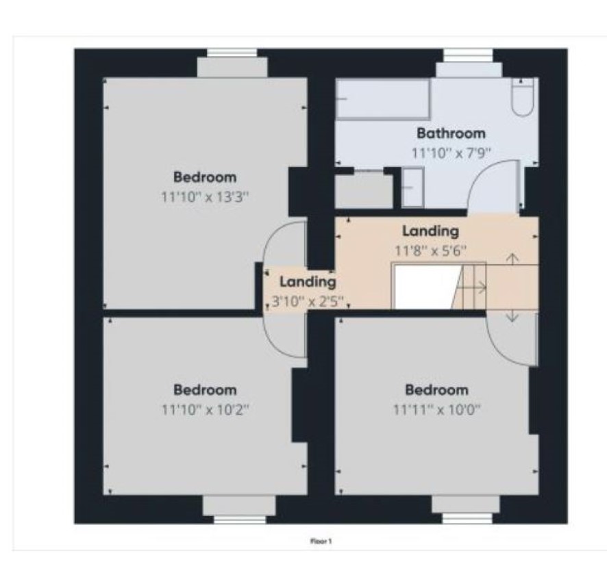Rear Bedroom 13'3 x 11'9 Front Bedroom 11'9 x 10' Front Bedroom 12' x 10' Bathroom 11'9 x 7'9
