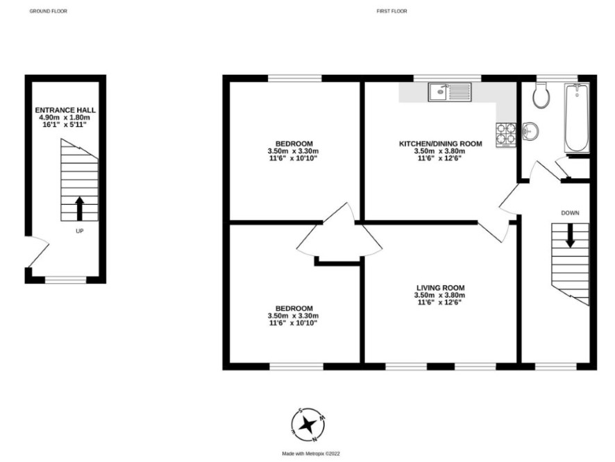 Hall with stairs Lounge 12'9 x 11'9 Kitchen 12'9 x 11' Bedroom 12'6 x 11' Bedroom 10'9 x 10'9 Bathroom