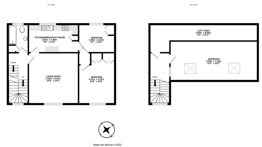 Hall with stairs Lounge 15'3 x 14'6 Kitchen 14'9 x 8'3 Bedroom 15' x 10'9 Bedroom 10'9 x 8'3 Bathroom Stairs to 2nd Floor Bedroom 25'6 max x 11'9max