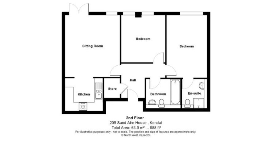 A second floor apartment located in the centre of Kendal, next to the River Kent. The accommodation is well presented with electric heating, double glazing, balcony and allocated parking, and comprises hall, lounge, kitchen, two bedrooms, en-suite and bathroom.