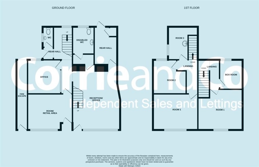 Reception/Office 19'4 x 13'5 with front facing window WC Rear Hall with built in cupboard Room/Retail Area 10'9 X 13'5 with front facing window Inner Hall Office 9'10 x 10'2 Rear Hall with stairs to the first floor