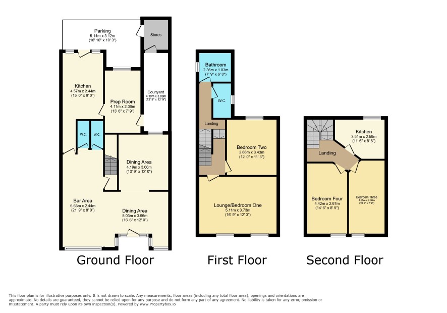 Bar Area 21'9 x 8' Dining Area 16'6 x 12' Dining Area 13'9 x 12' WCs Kitchen 15' x 8' Prep Room 13'6 x 7'9 Covered Courtyard Stores Parking to the rear