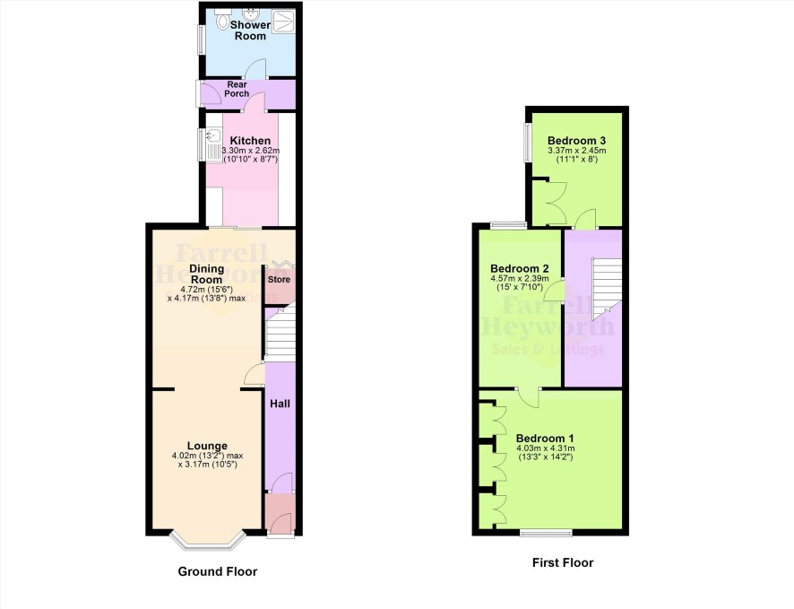 Vestibule into Hall Lounge 13'2 x 10'5 opening to Dining Room 15'6 x 13'8 Kitchen 10'10 x 8'7 Rear Hall Shower Room