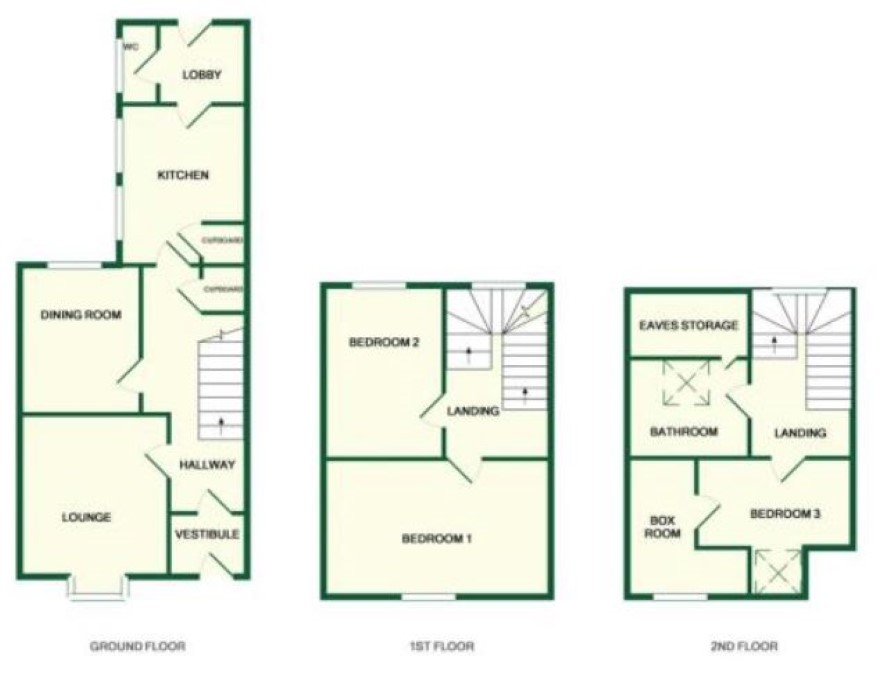 Vestibule Entrance Hall Front Sitting Room 13'9 x 12' + bay Dining Room 12' x 11' Kitchen 16' x 8'6 Rear Porch WC
