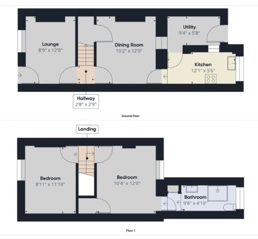 Sitting Room 11'3 x 8'9 Living Room 11' x 10'3 Kitchen 11' x 5'6 Utility 9'6 x 5'9