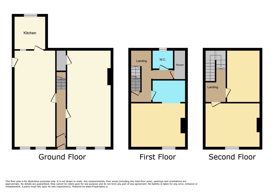 Ground Floor Through room 1 26'6 deep Through room 2 27' x 10'6 Kitchen 9' x 8'6 First Floor Front room 15' x 12' Middle room 9' x 5' Shower and WC Second Floor Front room 15'6 x 12'6 Rear Room Basement rooms