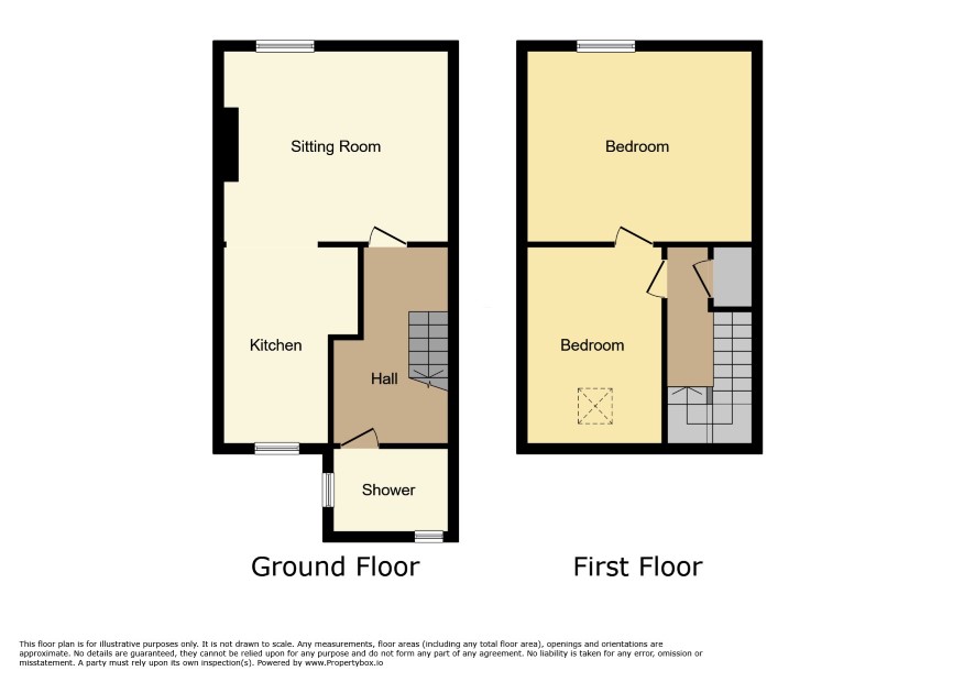 First Floor Sitting room 15' x 12'9 Kitchen 13' x 8'9 max Shower room Second Floor Bedroom 13'3 x 12'9 Bedroom 13' x 9'