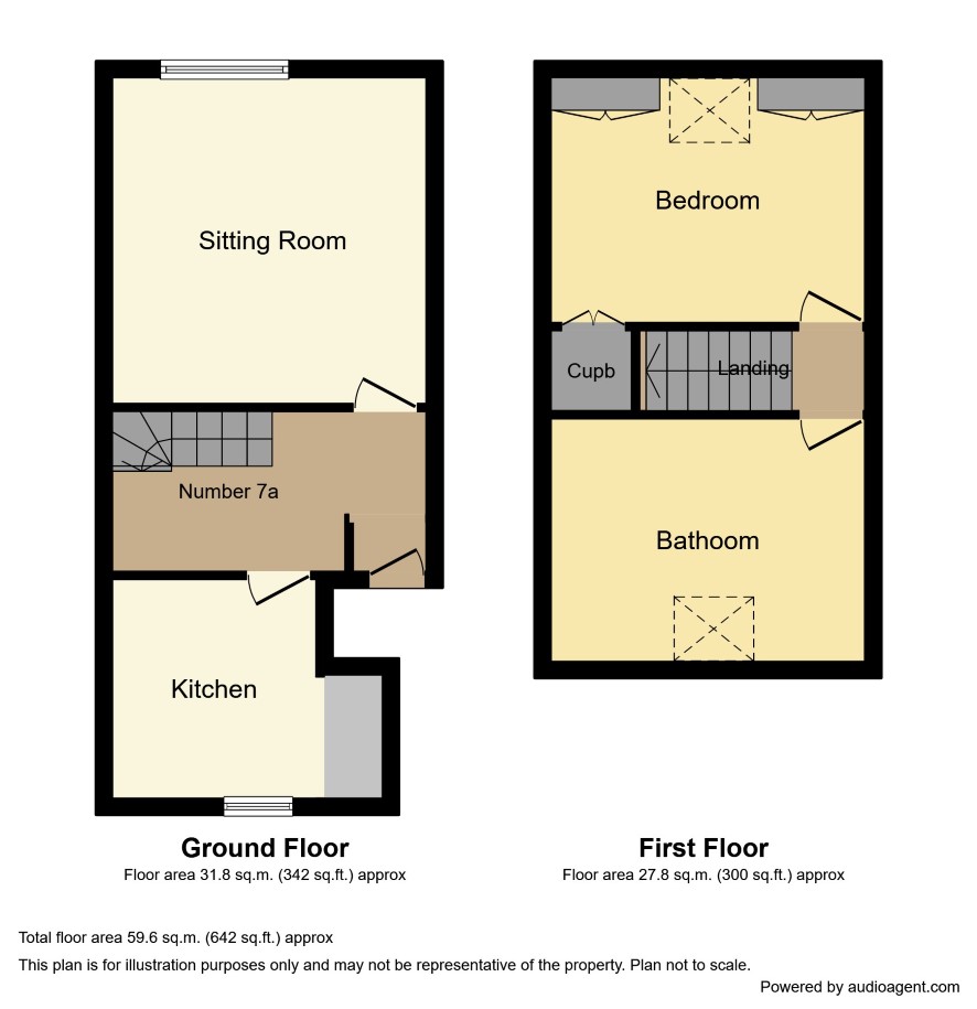 Approached via side passage to rear yard area. First Floor - Sitting Room - 14'3 x 13' Kitchen - 10'6 x 8' Bathroom - 10'9 x 5' Second Floor - Bedroom 1 - 12'9 x 7'3 Bedroom 2 - 13' x 10'9