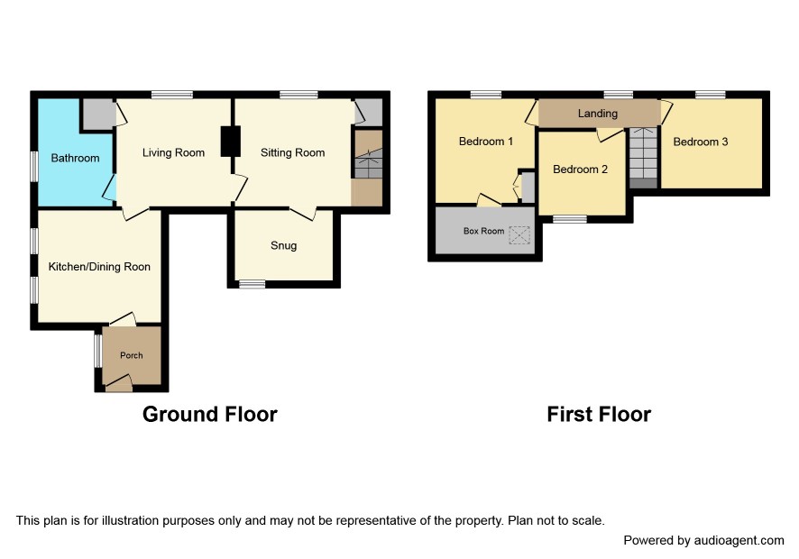 Vestibule Sitting Room 12' x 9'9 Snug 10'3 x 8'3 Living Room 14' x 12' Bathroom 8'9 x 7'6 Dining Kitchen 13'9 x 9'3 Porch 5' x 5'