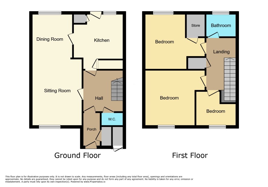 Porch Entrance Hall Cloakroom with WC Through Sitting/Dining Room 24' x 11' max, 8'3 min Kitchen 11'3 x 9'