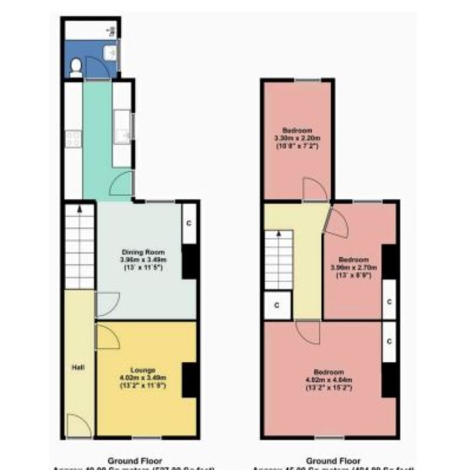 Entrance Hall Front Sitting Room 13'3 x 11'6 Living Room 13' x 9'9 Kitchen 10'6 x 7' Bathroom 6'6 x 6'