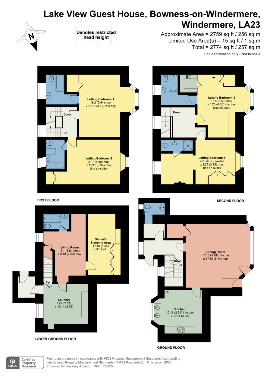 Guest Dining Room 18'10 x 17'10 Commercial Kitchen 12'11 x 10'11 Rear Hall with stairs to the first floor, and stairs to the lower ground. WC