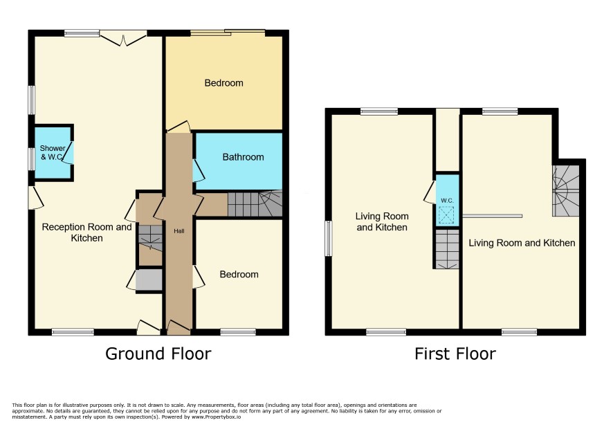 Front Reception room - 17'9 x 10'6 - with front and side outer doors Rear Kitchen - 17'9 x 14' with french windows Shower room with WC Inner hall Front Bedroom - 12' x 9'6 Bathroom with WC - 7' x 6'3 Rear Bedroom - 12' x 10'3 with patio doors
