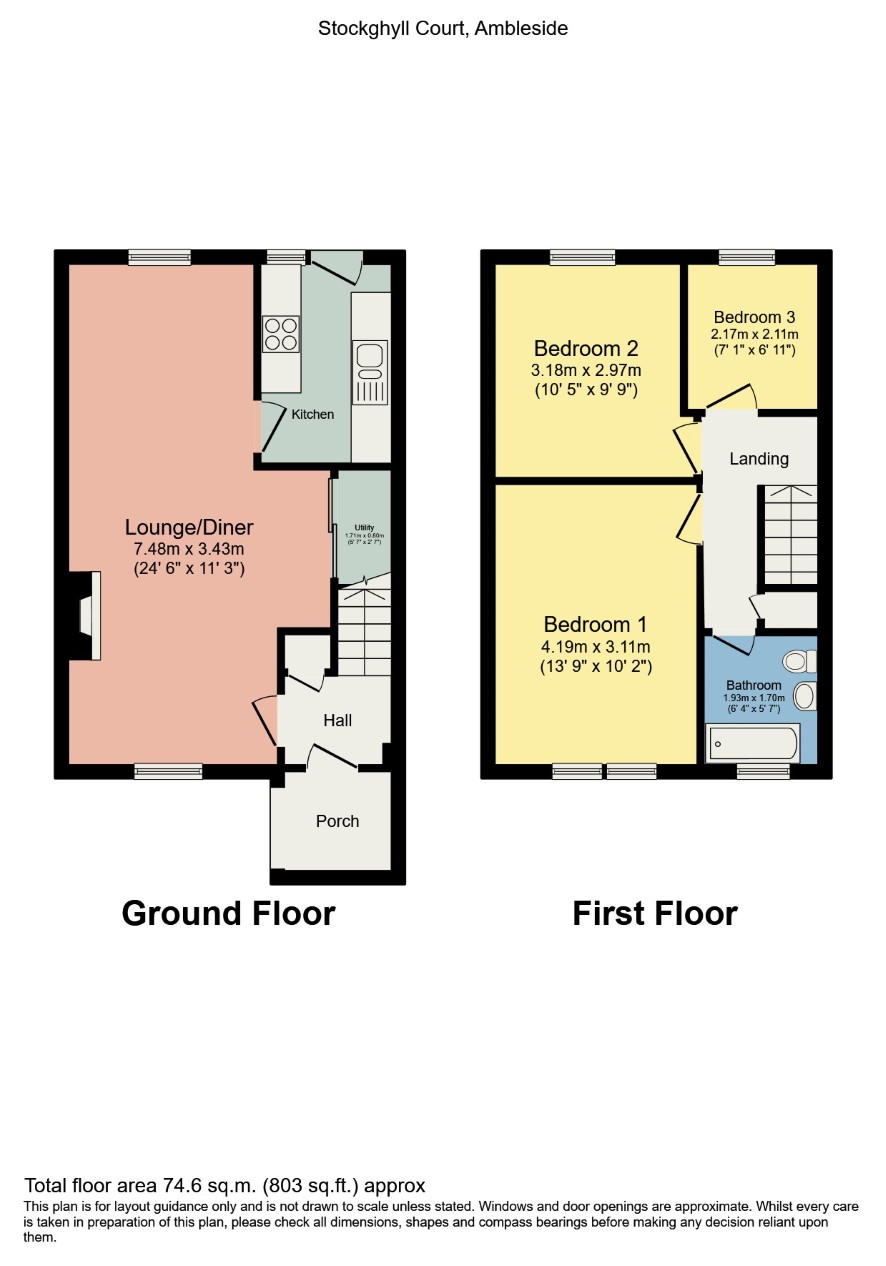 Porch Hall Lounge Diner 24'6 x 11'3 with understairs Utility cupboard Kitchen 9'8 x 6'4