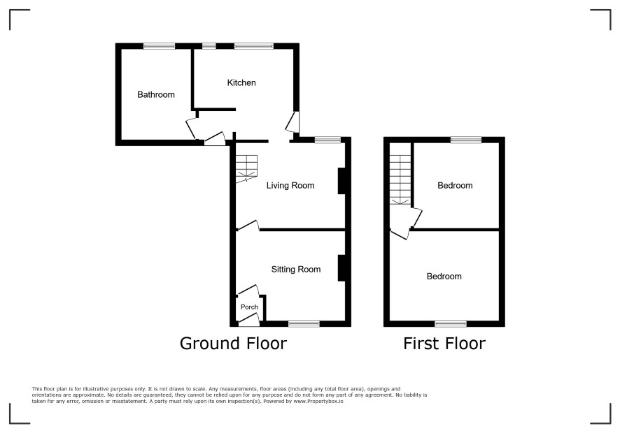 Vestibule Front Sitting Room 12'3 x 10'6 Living Room 12'6 x 11' Kitchen 10'3 x 9'9 max Bathroom 9'9 x 5'6