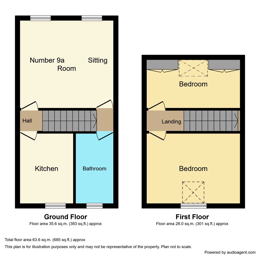 Approached via side passage to rear yard area. First Floor - Sitting Room - 14'3 x 13' Kitchen - 10'6 x 8' Bathroom - 10'9 x 5' Second Floor - Bedroom 1 - 12'9 x 7'3 Bedroom 2 - 13' x 10'9