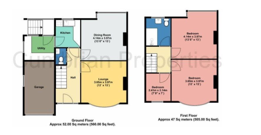 Hall Cloakroom with WC Front Sitting Room 13' x 12' Rear Living Room 13' x 12' Kitchen 7'6 x 6'9 Utility 8'9 x 7'