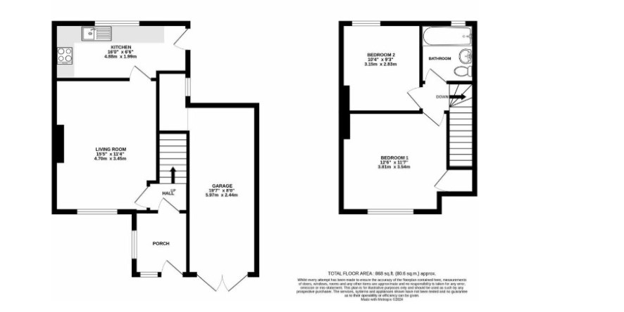 Front Bedroom 12'6 x 12' Rear Bedroom 10'3 x 9'3 Bathroom 6'9 x 6'3
