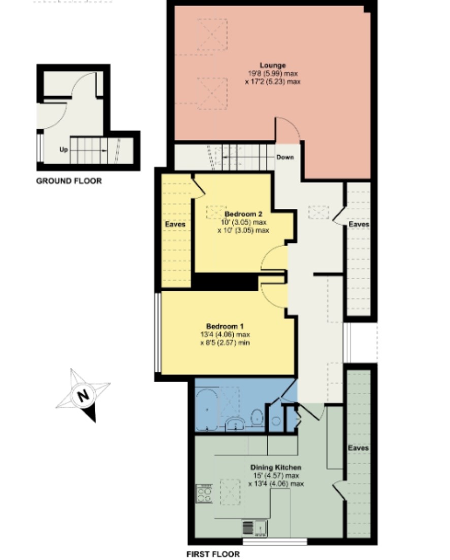 Living/Dining Area - 5.99m x 5.23m Kitchen - 4.57m x 4.06m Bedroom - 4.06m x 2.57m Bedroom - 3.05m x 3.05m Bathroom