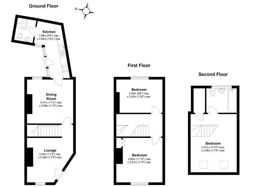 Attic Room - 14'3 x 12' max with two skylights, suitable for a number of uses and could be a third bedroom subject to separation and building reg's; Bathroom - 7'6 x 5'9 with bath with shower over, basin and WC.