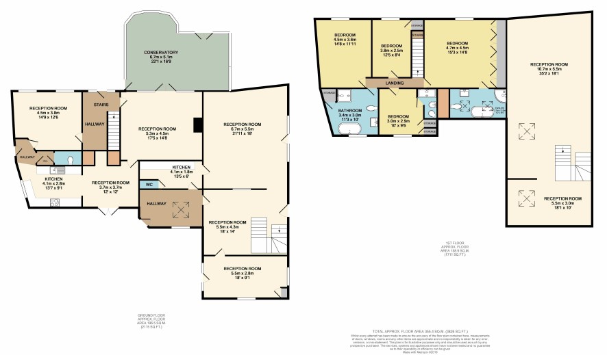 Entrance/Reception Room: 12' x 12' Reception Room: 17'6 x 14' Reception Room: 14'9 x 12'6 Kitchen: 13'7 x 9'1 Side hall with WC Conservatory: 22' x 16'9 max
