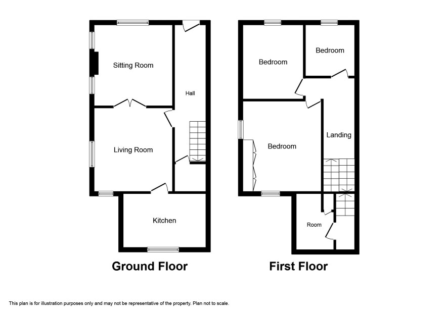Vestibule; Hall; Sitting Room - 14'6 x 13'3 with front and side windows and double doors into:- Living Room - 14' x 13' with side and rear windows; Kitchen - 12' x 7'6 with basic units.
