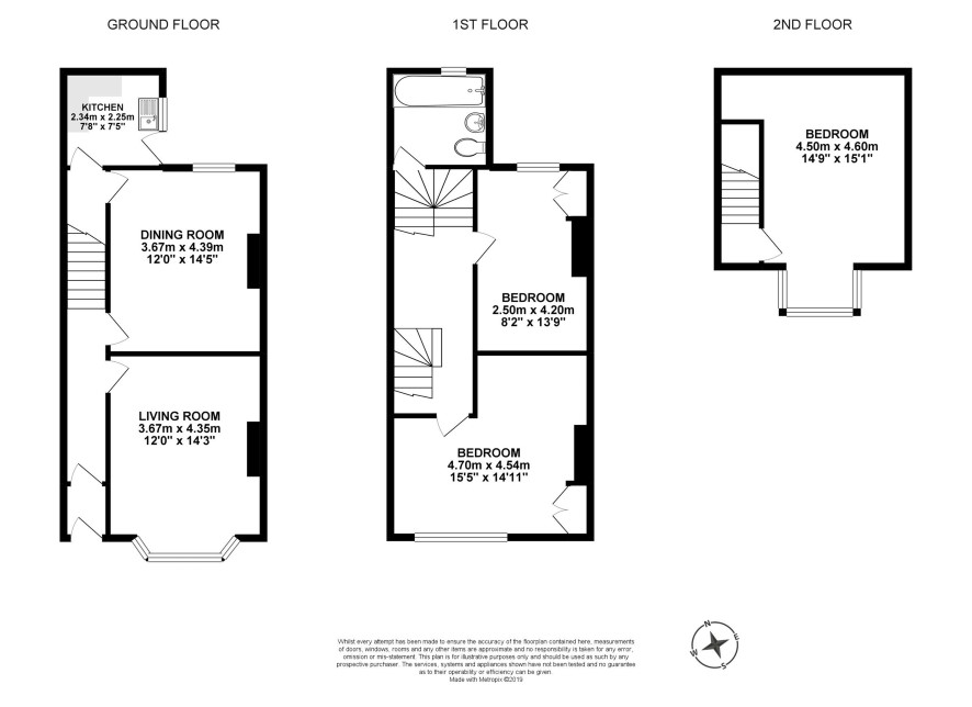 Landing; Bathroom - 7'9 x 7'3 with bath, basin and WC; Rear Bedroom - 13'6 x 10'; Front Bedroom - 14'9 x 14'.