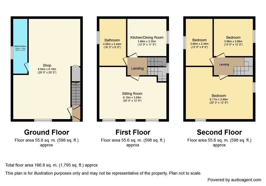 Entrance Hall with access to shop and maisonette; Shop - 29' x 20' max overall; Kitchen/Store with outer door.