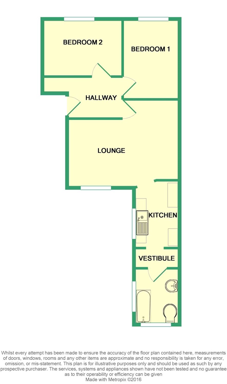 Two bedroom mid floor flat with gas central heating and double glazing. Comprises: Hall, lounge, kitchen, vestibule, bathroom and two bedrooms. Ideal investment purchase.