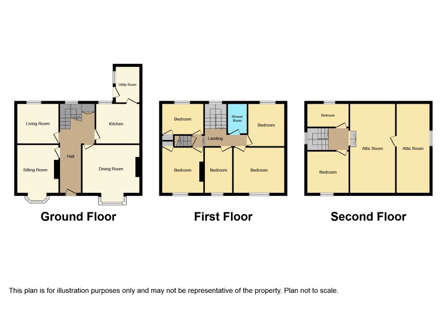 Landing; Bedroom 5 - 17'6 x 11'3; Bedroom 6 - 10'9 x 7'9; Attic Room - 18' x 14'6 leading into:- Attic Room - 14' x 11'.