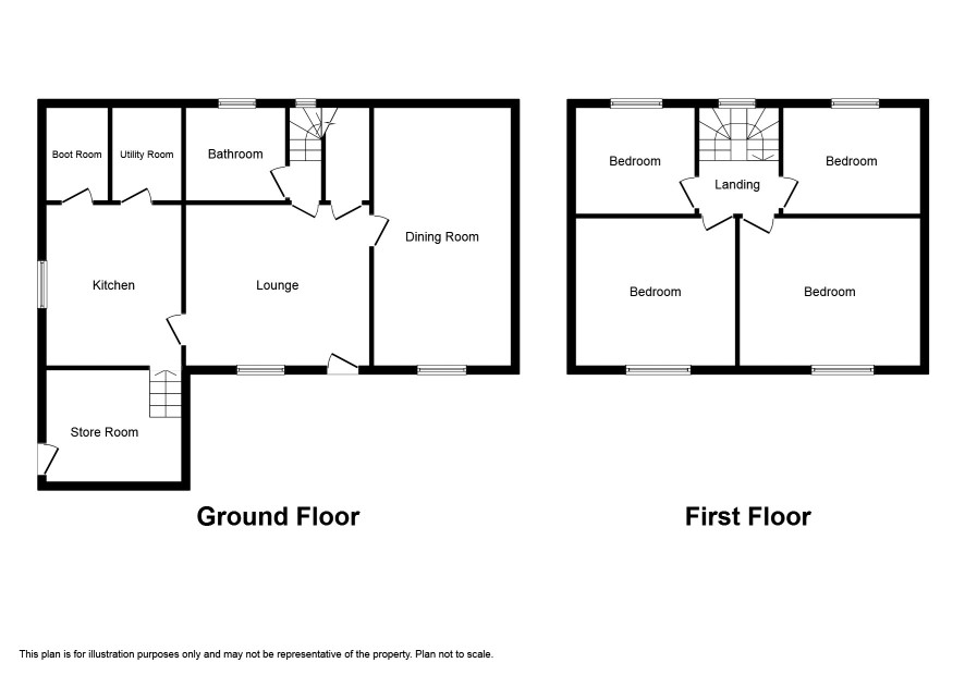 Hallway with stairs to the first floor Lounge 15'3 c 13'3 Dining Room 22' x 9'6 Kitchen 14'9 x 13'3 Utility Room 6'9 x 6'3 Boot Room Store Room 12'6 x 11'9 Bathroom 8'3 x 8'