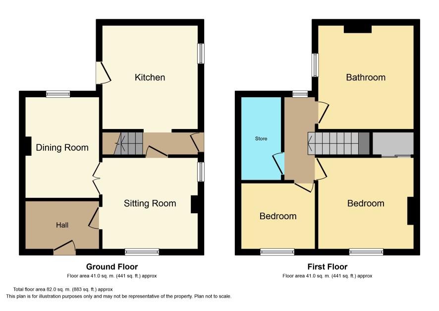 Landing; Front Bedroom - 14'9 x 11'; Front Bedroom - 11'6 x 11'3; Bathroom - 11'6 x 10'6 with roll top bath, basin, WC and shower cubicle; Store - 9' x 6'3;