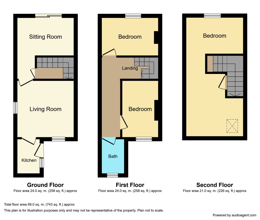 A spacious three storey end terraced property tucked well off the main road with fine open views. In need of modernisation but offering great potential with:- two reception rooms and kitchen to the ground floor, two bedrooms and bathroom to the first floor and third bedroom to the second floor.
