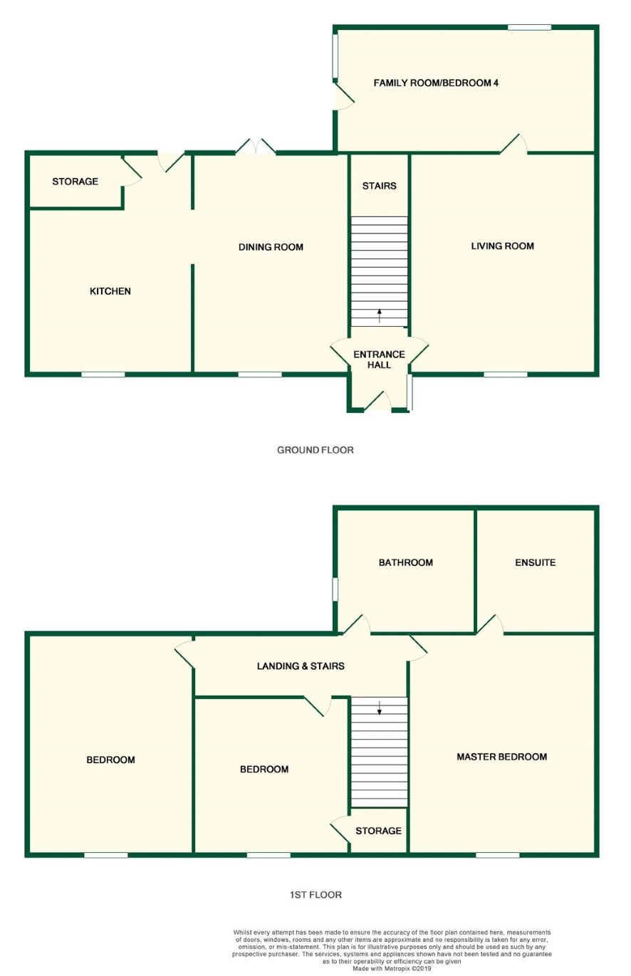 Entrance Hall with stairs off; Dining Room - 14'6 x 9'3 with french doors to rear garden; Kitchen - 14'9 x 9'9 with range of units, double oven and hob, fridge, freezer, dishwasher and washing machine, outer door to rear garden and access to walk in store with boiler; Living Room - 14'9 x 14' with cast iron stove and access into:- Family Room/Bedroom 4 - 18'9 x 5'9 with under floor heating and door into rear garden;