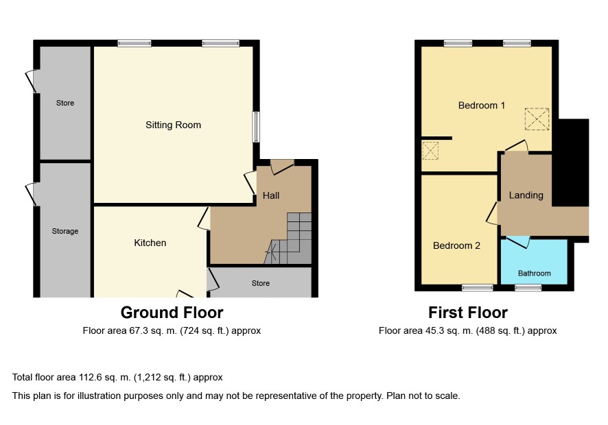 Hall; Sitting Room - 17'3 x 14'6; Kitchen - 12'3 x 11'; Store - 11' x 5'9.