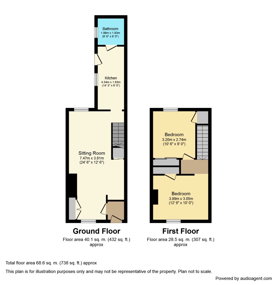 Two bed terraced house in need of modernisation