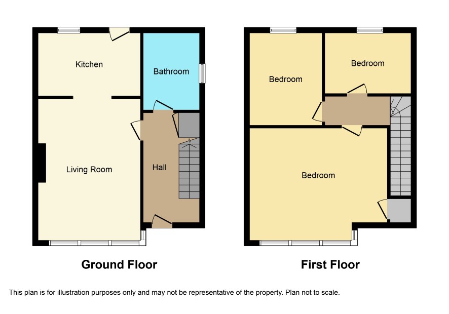 A three bedroomed semi-detached house with central heating, double glazing and gardens in need of some, mainly, cosmetic improvement. Hall, sitting room, kitchen, bathroom and three bedrooms upstairs.