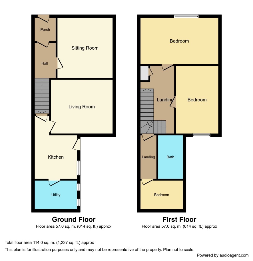 Vestibule Hallway Front Sitting Room 12'9 x 11'6 Living Room 14' x 12'3 Kitchen 9' x 8'9 Utility 8'9 x 7'6