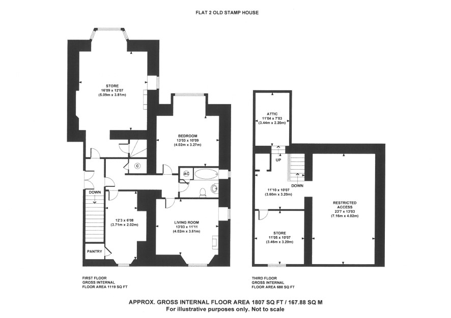 with steps leading to third floor:- Room One: 11'5 x 10'7 Room Two: 23'7 x 13'3 Room Three: 11'4 x 7'