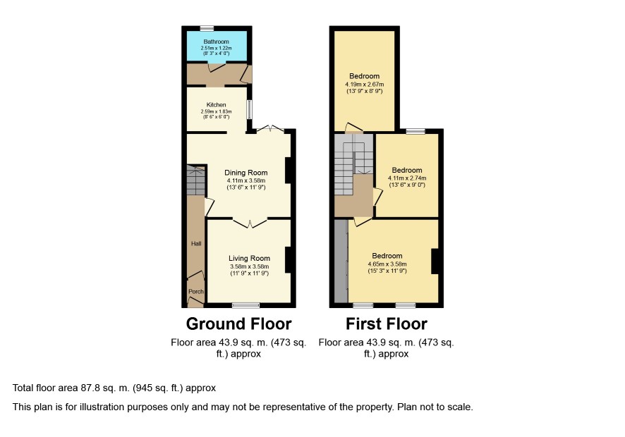 Front Bedroom - 15'3 x 11'9; Rear Bedroom - 13'6 x 9'; Rear Bedroom - 13'9 x 8'9;