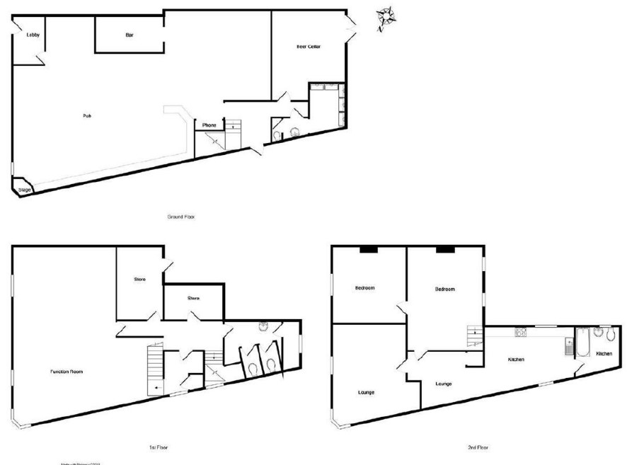 Entrance Lobby Bar 46' x 31'3 Male Toilets Cellar: with double externa doors Inner hall with stairs to first floor and external door.