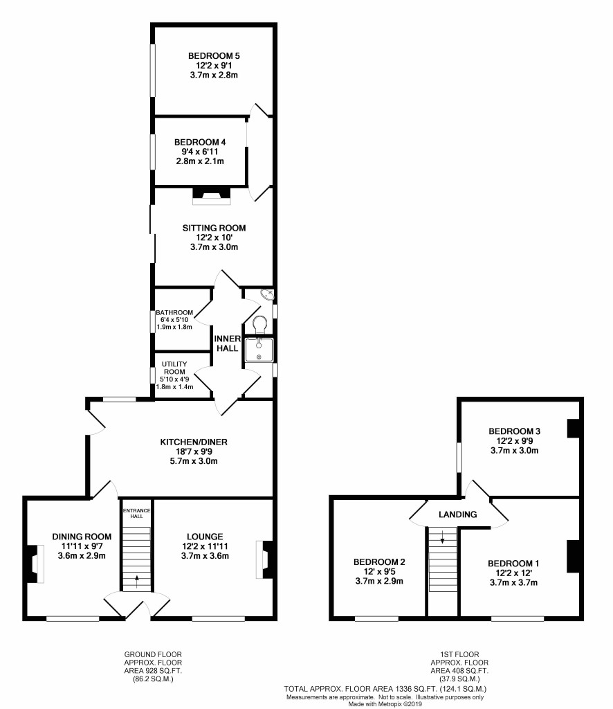 Hall, Lounge, dining room, kitchen/diner, inner hall, utility room, shower room, separate W.C., bedroom 5, sitting room and a further bedroom.