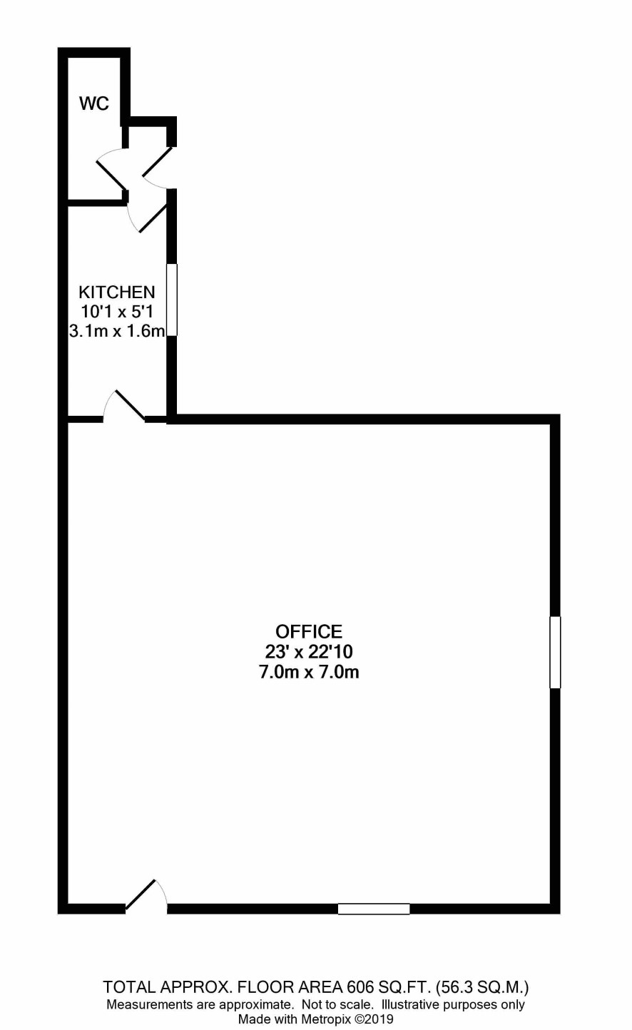 65: Office, kitchen, rear entrance lobby, wc 65A: Office, cupboard, wc