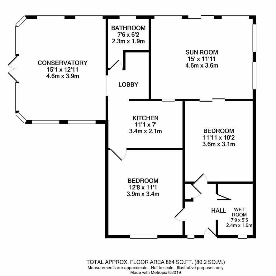 Family room, conservatory, kitchen, two bedrooms, wet room, bathroom