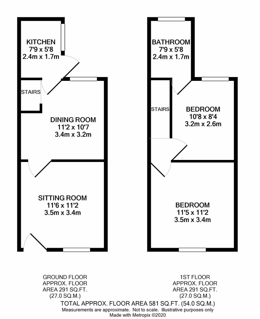 Two bedrooms, bathroom
