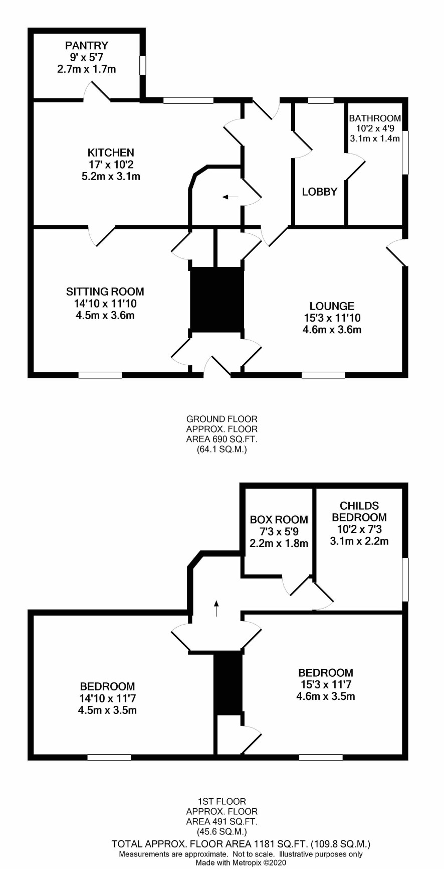 Hall, lounge, sitting room, kitchen with pantry, rear lobby bathroom