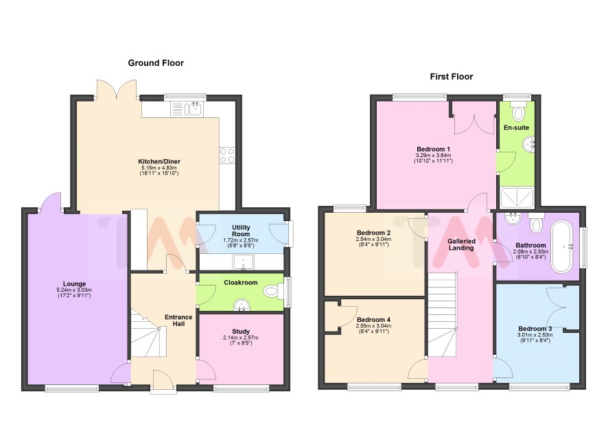 Hall, Clks W.C. Lounge, Kitchen/Diner and a Study/Playroom.