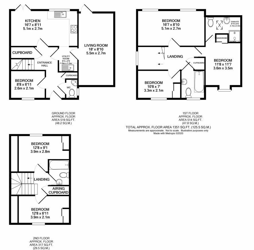 Landing, three bedrooms, bathroom