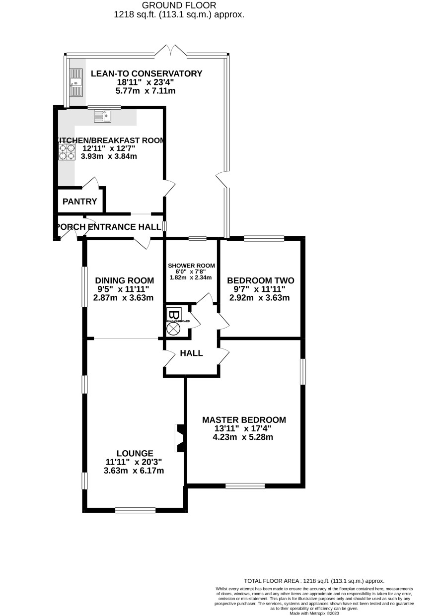 Hall, dining room, lounge, kitchen, 2 double bedrooms, shower room and a lean-to conservatory