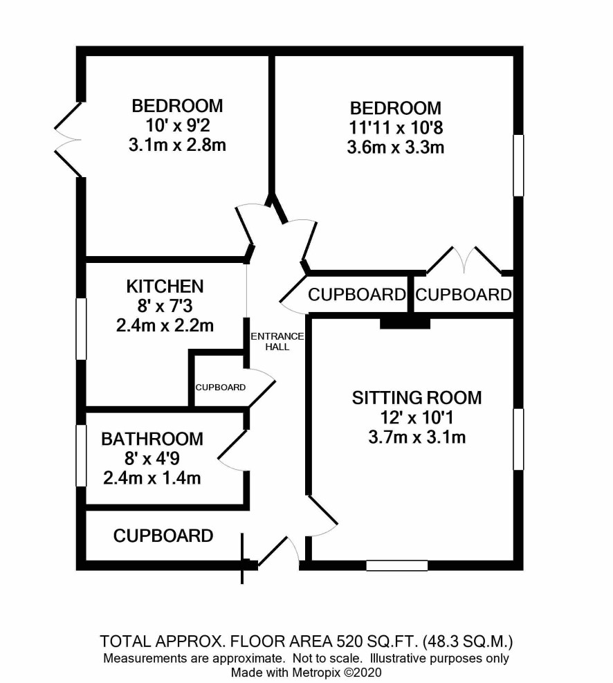 Ground floor: entrance hall, sitting room, bathroom, kitchen, two bedrooms